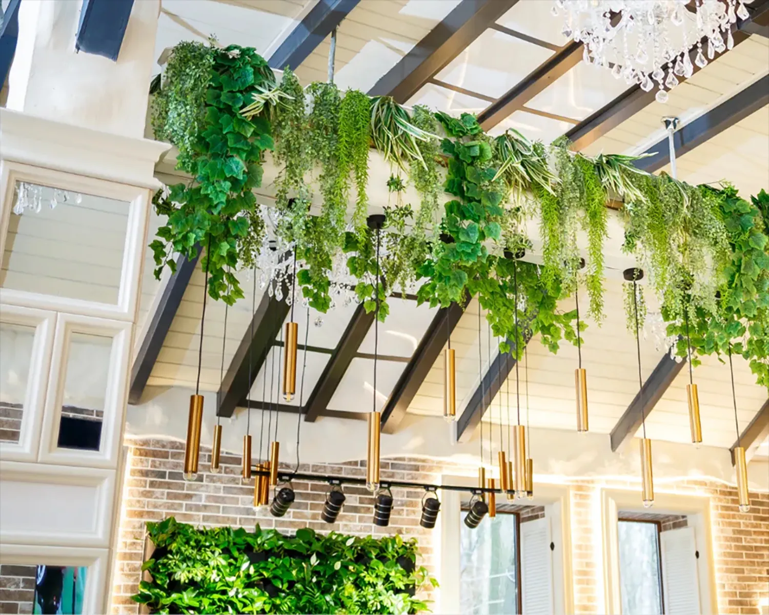High-traffic or high-risk areas. Entryways, event spaces, and areas near HVAC systems can be hard on live plants. Artificial installations hold up without the fragility.