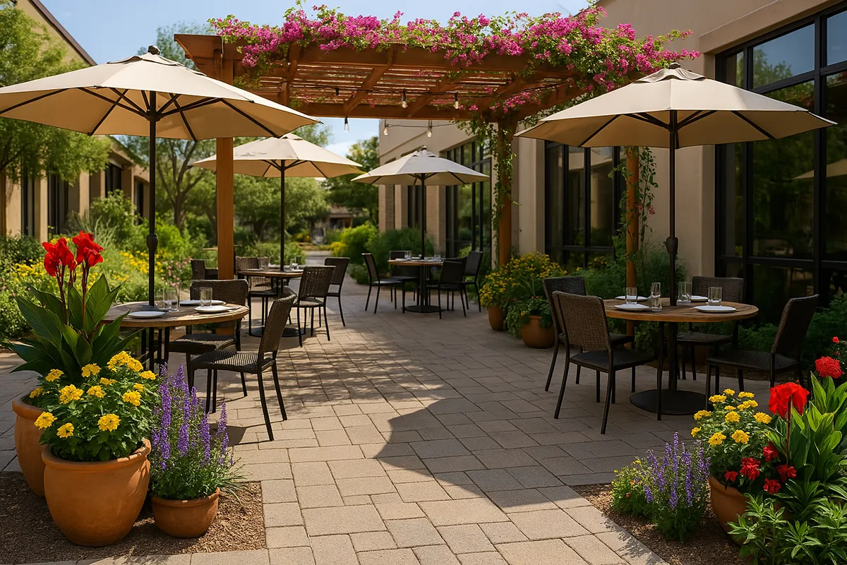 Many businesses refresh patio plants during spring and fall to adjust for sun orientation, update color themes, and replace plants that have outgrown their containers. This process is significantly easier than modifying landscaping because patio plants do not root into the ground or under patio floors.